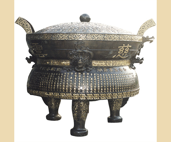 青銅制作的銅鼎是古代青銅器的代表之一,銅鼎本為古代的食物用具,隨著發展成為了權利的象征,當今銅鼎更以誠信為喻義。大型的銅鼎雕塑以其獨有的特征,展示出優秀的品質,就如人的品德一樣。
