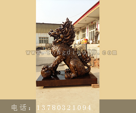 古人把雄性稱麒,雌性稱麟,《宋書》:麒麟者,仁獸也。牡曰麒,牝曰麟。麒麟是吉祥神寵,主太平、長壽;麒麟因其深厚的文化內涵,在中國傳統民俗禮儀中,被制成各種飾物和擺件用于佩戴和安置家中,有祈福和安佑的用意。博創銅雕公司提供各種麒麟銅雕等銅雕的訂做,我們制做的麒麟銅雕做工精湛。做為雕塑廠家,滿足您的需求,為您打造一流的雕塑作品是我們的使命。博創銅雕公司為您鑄造各種銅雕工藝品,歡迎聯系洽談!
