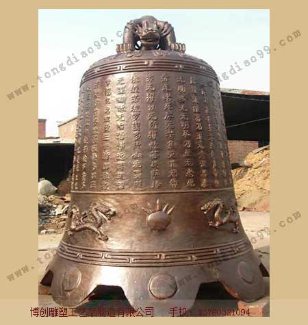 鐘的節奏感強,它能表達人們的歡樂喜悅,又可以在生產勞動中協調人們的勞動步伐、在舞蹈中使舞姿整齊優美、在練兵中使士兵步伐一致,以振軍威,因而在勞動生產中最需要這種樂器。我公司秉持嚴謹、認真、尊重信仰的理念,做,就要做到最好。我公司做為大型雕塑企業,可以提供各種銅鐘工藝品,歡迎聯系我們進行訂做。