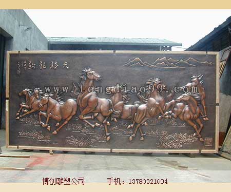 為不可多得的珍品。潑墨寫意或兼工帶寫,塑造了千姿百態(tài)、倜儻灑脫的馬,或奔騰跳躍、或回首長嘶,或騰空而起、四蹄生煙……。他畫的馬既有西方繪畫中的造型,又有中國傳統(tǒng)繪畫中的寫意,融中西繪畫之長於一爐,筆墨酣暢,形神俱足。它那剛勁矯健,剽悍的駿馬,給人以自由和力量的象征,鼓舞人們積極向上。圖為博創(chuàng)銅雕鑄造的八駿圖銅浮雕,處處體現出博創(chuàng)銅雕的精湛之處。我公司是多年的銅雕公司,對于鑄造銅雕有著相當豐富的經驗。我公司秉持嚴謹、認真的工作理念,令客戶滿意是我們的宗旨,滿足客戶的需求是我們的職責。我們有著專業(yè)的制作團隊,無論客戶您有著何種需求,相信我們都能根據您的需求加工定制,給您一副令您滿意的作品。博創(chuàng)銅雕公司為您提供各類銅雕工藝品,歡迎垂詢訂購!
