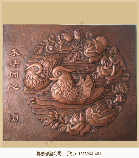 銅浮雕是中國古文化藝術,引進歐洲先進技術和工藝,經過長期研究和攻關在國內首家研制開發生產的高級紫銅工藝品,以不銹蝕、不脫色的優質紫銅為原料,經過多道工序精制而成,在內容和形式上與地方特色文化緊密結合,具有做工精細、形象逼真、立體感強、風格古樸、畫面栩栩如生、可永久收藏等特點。銅浮雕選材貼近現實生活,是民間的藝術精靈,他展現著人們的思想和審美。這種浮雕制作技術流傳在民間