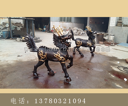 尾毛似龍尾狀舒展。它的綜合面不及龍、鳳那么廣泛,不過名氣也不算小。從古至今不乏能人志士將麒麟的形象以各種形式展現出來。自青銅文化興起后,銅雕麒麟也變得更加廣受歡迎,以銅打造麒麟形象,使人觸及可摸,這樣麒麟在人們心中的形象就變得更加明確。圖為博創銅雕鑄造的麒麟雕像,處處體現出博創銅雕的精湛之處。我公司是多年的銅雕公司,對于鑄造銅雕有著相當豐富的經驗。