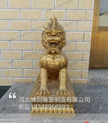 古人把雄性稱麒,雌性稱麟,《宋書》:麒麟者,仁獸也。牡曰麒,牝曰麟。麒麟是吉祥神寵,主太平、長壽;麒麟因其深厚的文化內涵,在中國傳統民俗禮儀中,被制成各種飾物和擺件用于佩戴和安置家中,有祈福和安佑的用意。博創銅雕公司提供各種麒麟銅雕等銅雕的訂做,