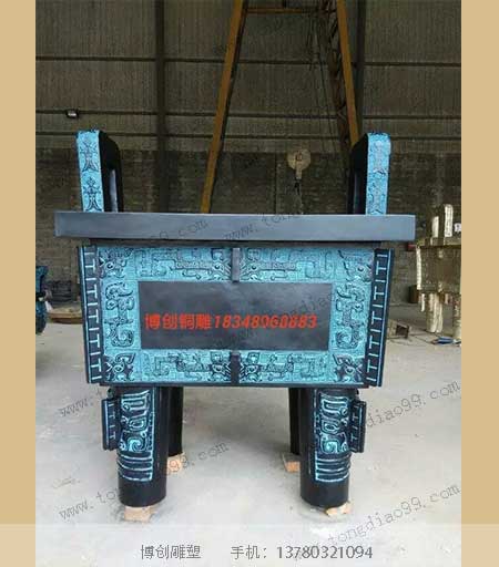 鼎身雷紋為地,四周浮雕刻出盤龍及饕餮紋樣,反映了中國青銅鑄造的超高工藝和藝術(shù)水平。我公司秉持嚴謹、認真、尊重信仰的理念,做,就要做到最好。我們會盡力還原原鼎樣貌,當然如果客戶有什么需求,我們也將一一滿足。服務(wù)客戶是我們的宗旨。我公司銅器經(jīng)過嚴格的制作工藝,將努力保障的您的滿意。博創(chuàng)銅雕公司為您鑄造各種銅器制品,歡迎聯(lián)系洽談!