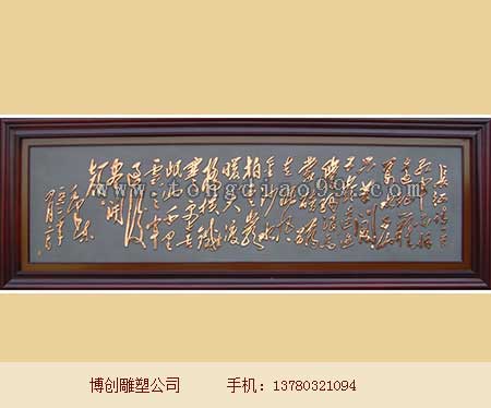 毛主席詩詞浮雕,字畫浮雕制作,河北博創(chuàng)銅雕廠。毛澤東,字潤(rùn)之(原作詠芝,后改潤(rùn)芝),筆名子任。湖南湘潭人。中國(guó)人民的領(lǐng)袖,馬克思主義者,偉大的無產(chǎn)階級(jí)革命家、戰(zhàn)略家和理論家,中國(guó)共產(chǎn)黨、中國(guó)人民解放軍和中華人民共和國(guó)的主要締造者和領(lǐng)導(dǎo)人,詩人,書法家。1