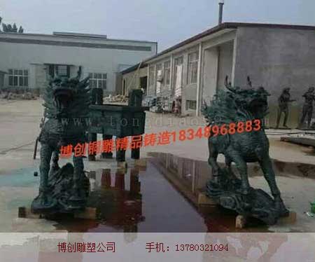 博創銅雕公司提供大型麒麟的鑄造,用料實誠,做工精細,是您訂做雕塑的首選。麒麟是中國古人相信存在的神靈。在中國眾多民間傳說中,關于麒麟的故事雖然并不是很多,但其在民眾生活中都實實在在地無處不體現出它特有的珍貴和靈異。