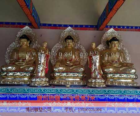 我公司集科研、工藝品開發設計、工藝品普通鑄造、澆鑄、精密鑄造于一體。技術力量雄厚,設備先進。是河北銅雕中的知名銅雕銅工藝品企業,是河北眾多銅雕企業中獨樹一幟,為您打造精品銅雕。還可更深一步為新老客戶定身量制各種銅制、鐵制雕塑工藝品。我公司重合同、守信譽,質量第一,價格最優,深愛新老客戶好評。我廠佛像秉持嚴謹、認真、尊重信仰的理念,做,就要做到令客戶滿意。將佛像的莊重、肅穆體現的淋漓盡致。我公司做為大型雕塑企業,可以提供各種雕塑,歡迎聯系我們進行訂做。三寶佛又稱三世佛, 三個佛世界的佛。中間是裟婆世界的中央現在佛 釋迦牟尼佛, 左脅東方凈琉璃世界的藥師佛,右脅西方極樂世界的阿彌陀佛也稱橫三世佛。寺廟大雄寶殿所供一般三寶佛,或者華嚴三圣。寶就是佛 寶、法寶、僧寶。佛寶是釋迦牟尼佛,法寶即四諦圣法,僧寶就是最初被度的五比丘。根據大乘佛教的說法,人人可以成佛,佛的主要任務是度化眾生超越輪回成佛,往生西方極樂世界。三寶佛是中國廟宇中的主要神像。三寶佛在藏傳佛教中占有相當重要的地位。