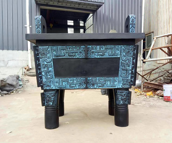 司母戊鼎鑄造于商代晚期,距今已有3000余年的歷史。此鼎1939年出土于中國中部河南省安陽殷墟的一座商代古墓中,因為腹內(nèi)壁鑄有“司母戊”三字而得名。司母戊鼎是商王為祭祀自己的母親“戊”鑄造的。此鼎形制龐大,造型莊重,長方形的腹部及足上部以云雷紋為地紋,裝飾有獸面紋。一對立耳的外側(cè)還裝飾有雙虎噬人首圖案,四立足中空。